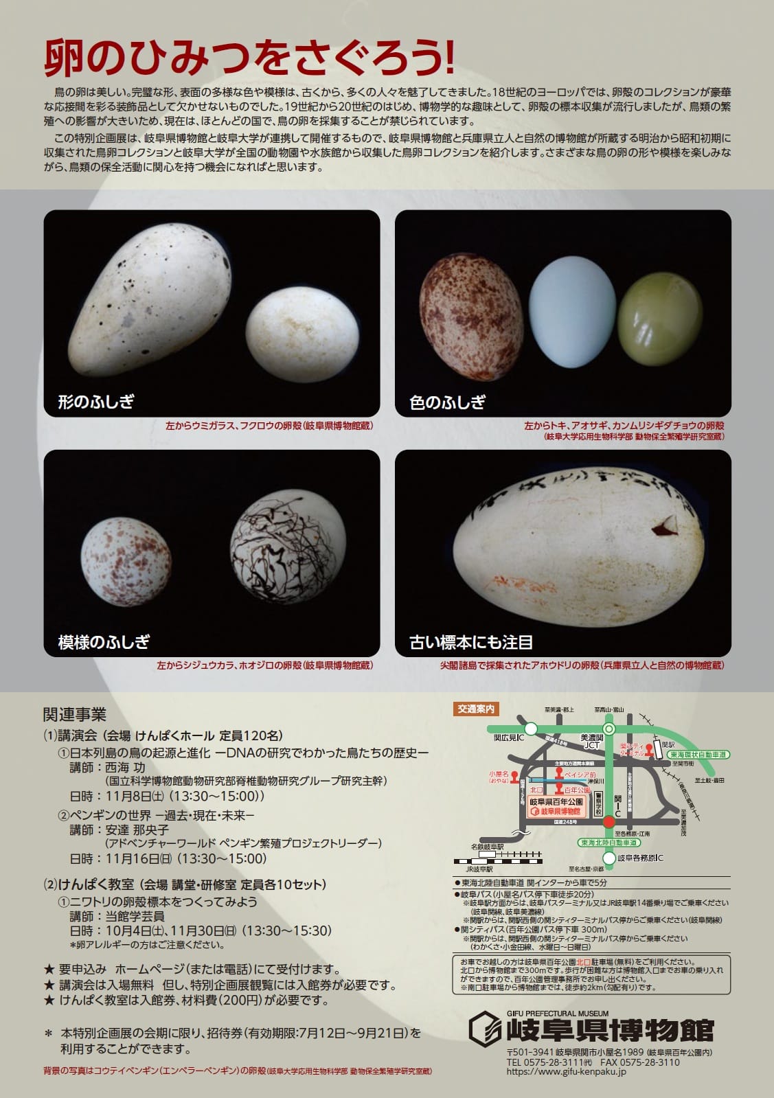 岐阜県博物館・岐阜大学連携特別企画展「鳥の卵のひみつ―Bird Eggs―」
